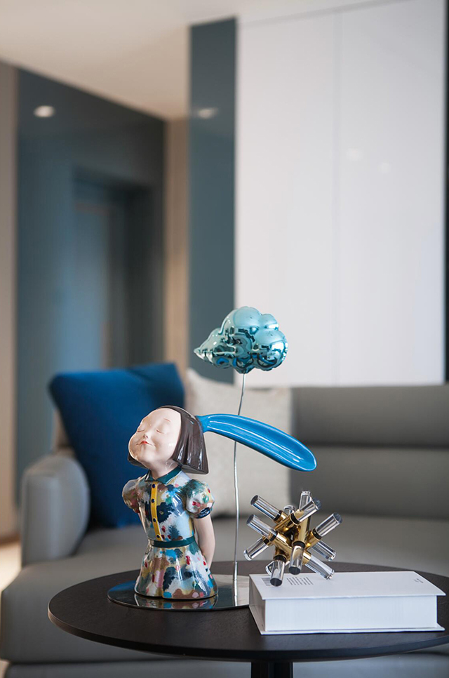 - 背景墙:白色柜体+黑玻金属格展示柜,藏杂物+摆装饰两不误,灯光一打高级感