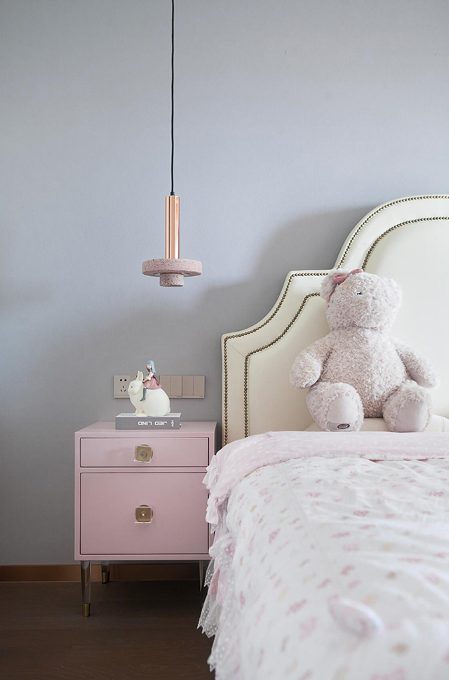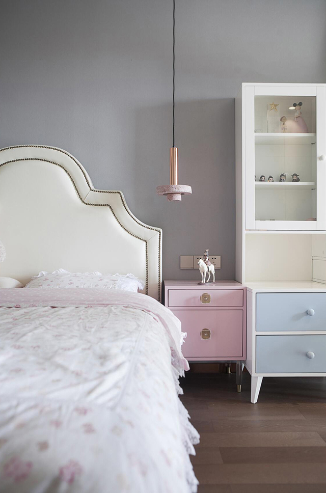 - 色调:浅灰墙+樱花粉软装,长大后换床品就能秒变简约风,不用二次装修;
